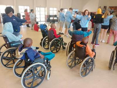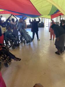 A great highlight of this visit for everyone involved was another ‘first’ for the Bambisanani Partnership: a visit to Thembimfundo Special School for children with a wide range of different disabilities. The team ran the school’s first ever Sports Day for the children, which included activities such as dancing, high jump and netball. Teacher Charlotte Wood said, “It was moving, rewarding and insightful to see how positively the children responded to the various activities. The parachute games were a particular success where they joy on their faces was a sight that will never be forgotten.”